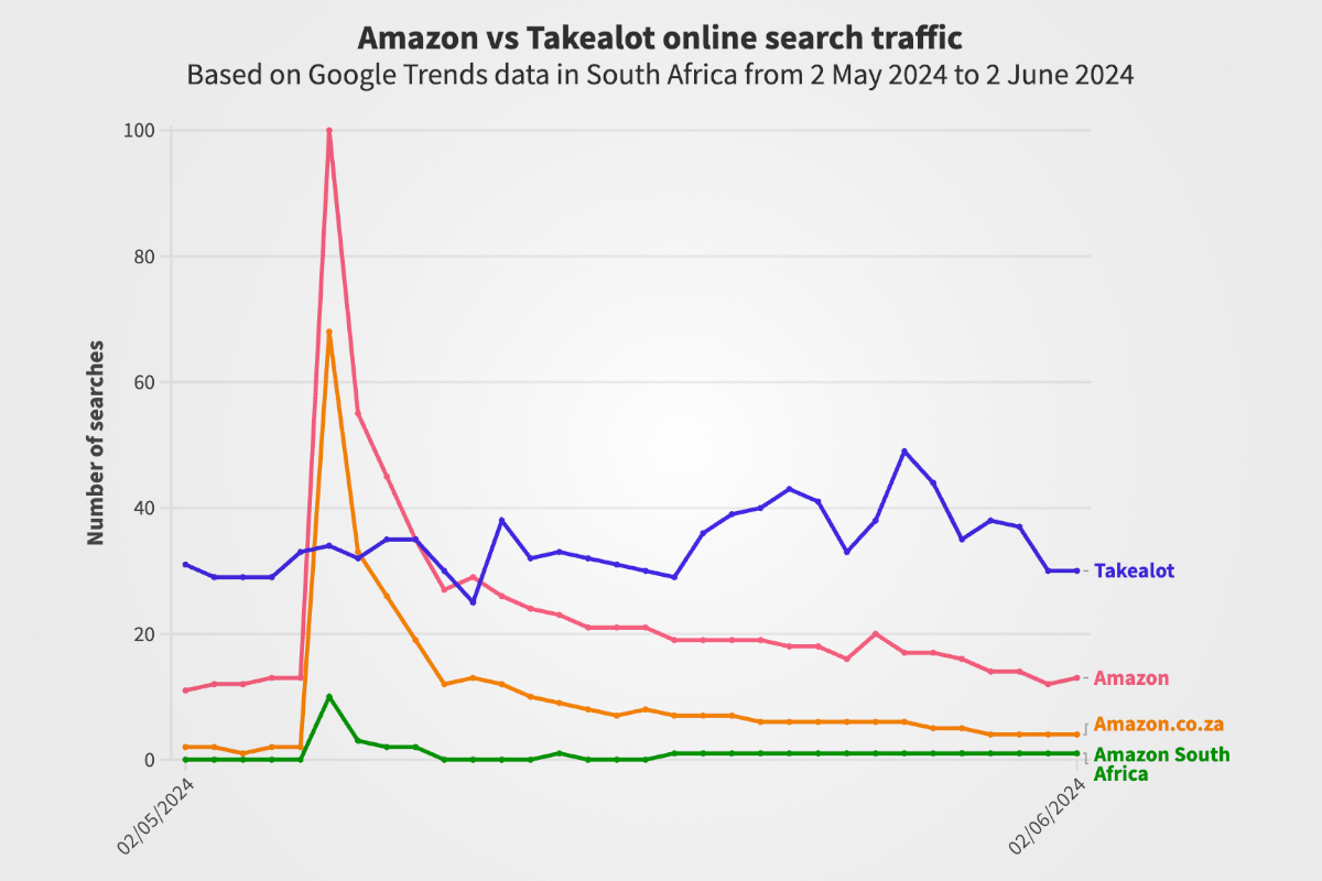 However, Amazon’s average daily search traffic is struggling against its main local rival — Takealot.