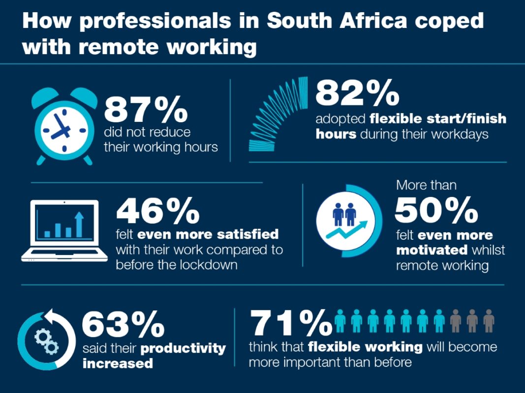 According to a survey conducted by PageGroup, roughly 63% of South African-based professionals said that their productivity increased while working from home, compared to 31% who said their productivity remained the same.