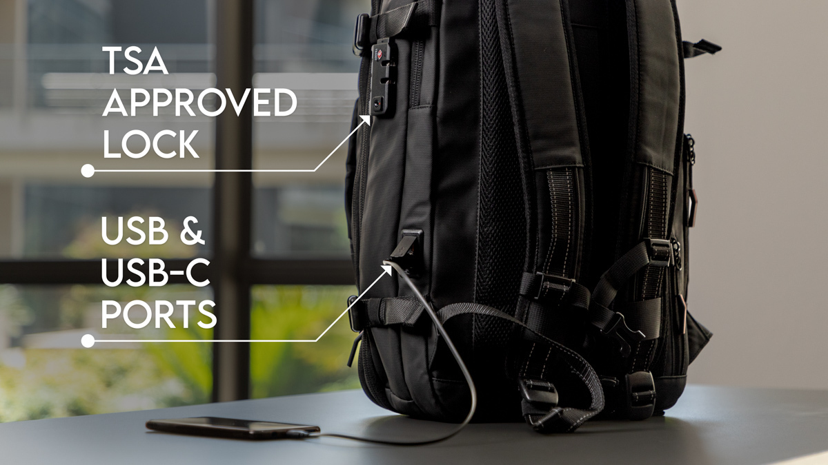 A TSA-approved combination lock on the side ensures all of your valuables are secured, while built-in USB-A and USB-C ports make it easy to charge your smartphone while navigating a foreign country – all you need to do is hook it up to a power bank inside the backpack.