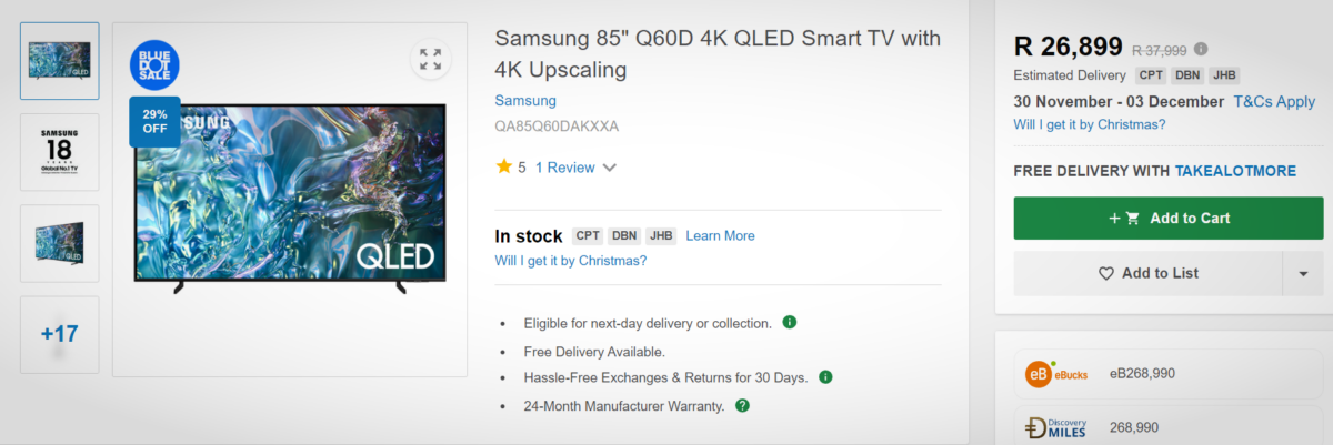 Some of the best Black Friday tech deals available from online retailers in South Africa are listed below.