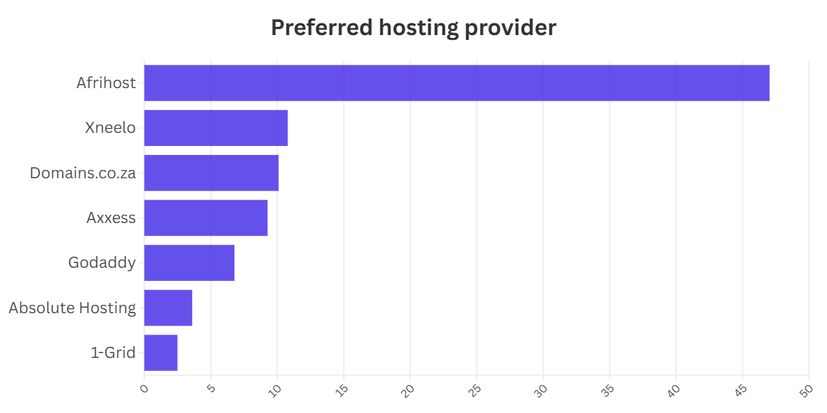 The survey showed that Afrihost is by far the preferred hosting company in South Africa, receiving 47% of the total votes.
