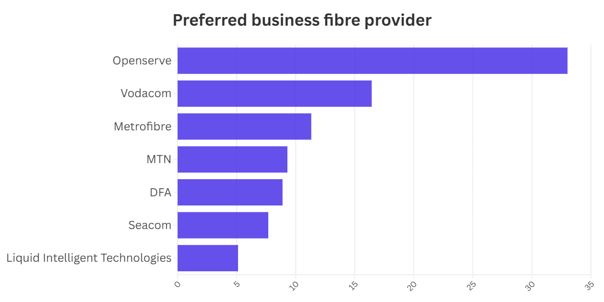 Openserve is the preferred business fibre provider, with a third of the total votes.