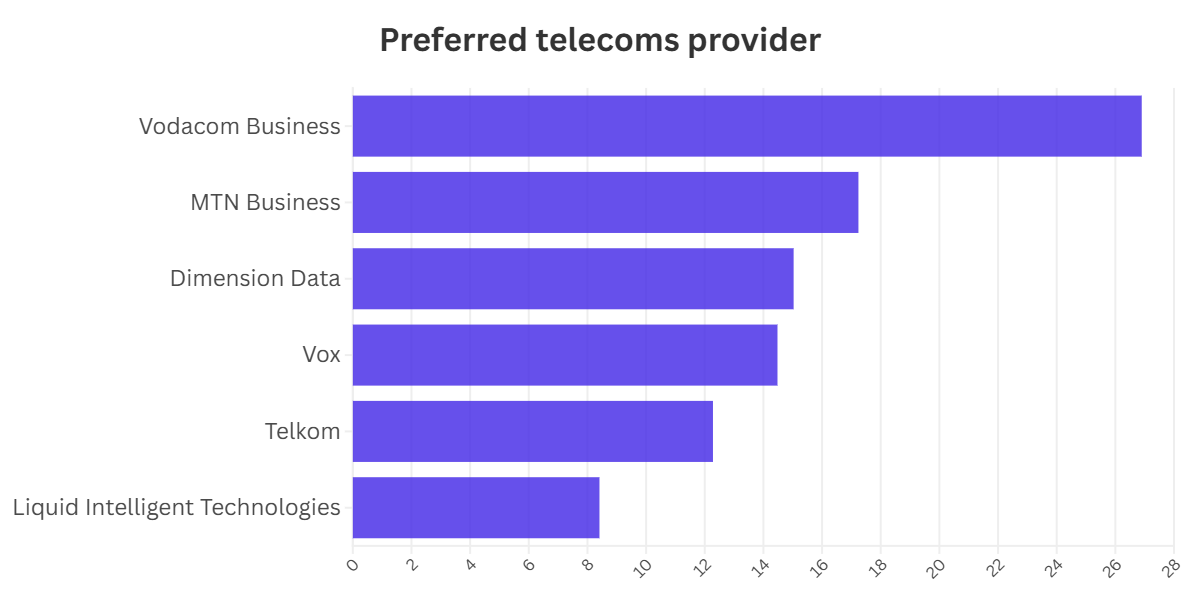 There is a wider competition among fixed telecommunications providers, but Vodacom Business was still the clear winner at 27%.