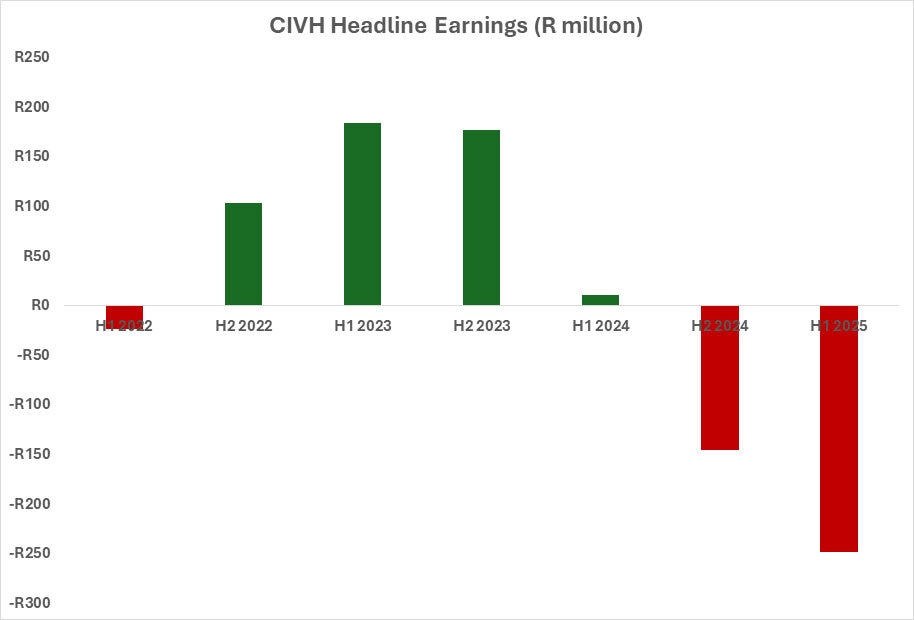 For its half-year results, Remgro reports that CIVH made a R247.4 million loss during the six months between 1 April and 31 September 2024.