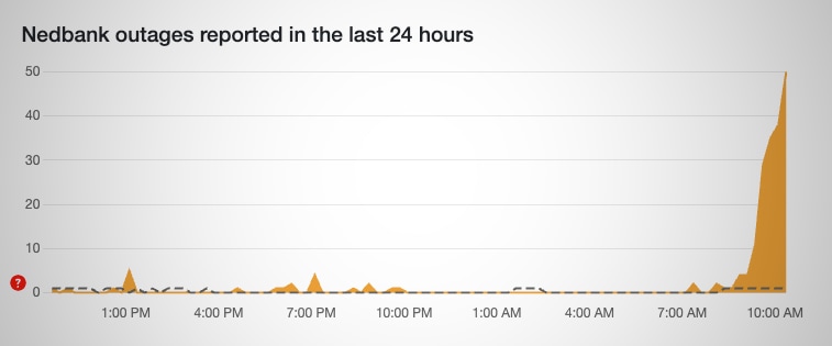 Downdetector shows that Nedbank’s problems began at around 09:00, with outage reports surging about thirty minutes later.