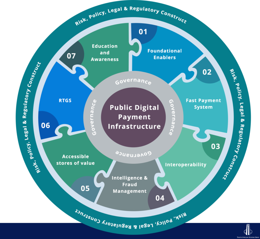 The seven pillars of the Public Digital Payment Infrastructure presented by SARB Vision 2023 are highlighted below.