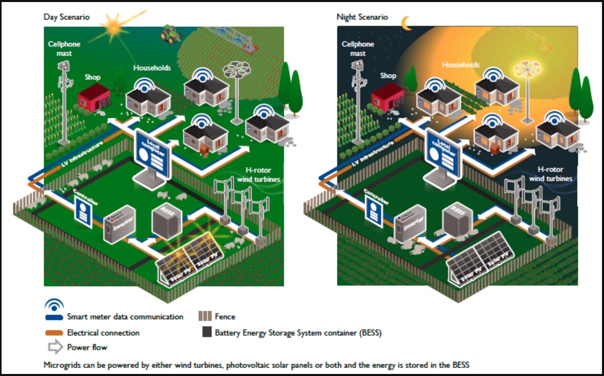 The image below shows the typical layout and functioning principles of an Eskom microgrid.