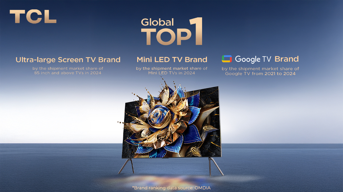 TCL Electronics, a leading consumer electronics brand and the world’s top 2 TV brand, has been recognized with three Global TOP 1 rankings by the market research company Omdia, highlighting its leadership in ultra-large TVs, Mini LED TVs, and Google TVs.
