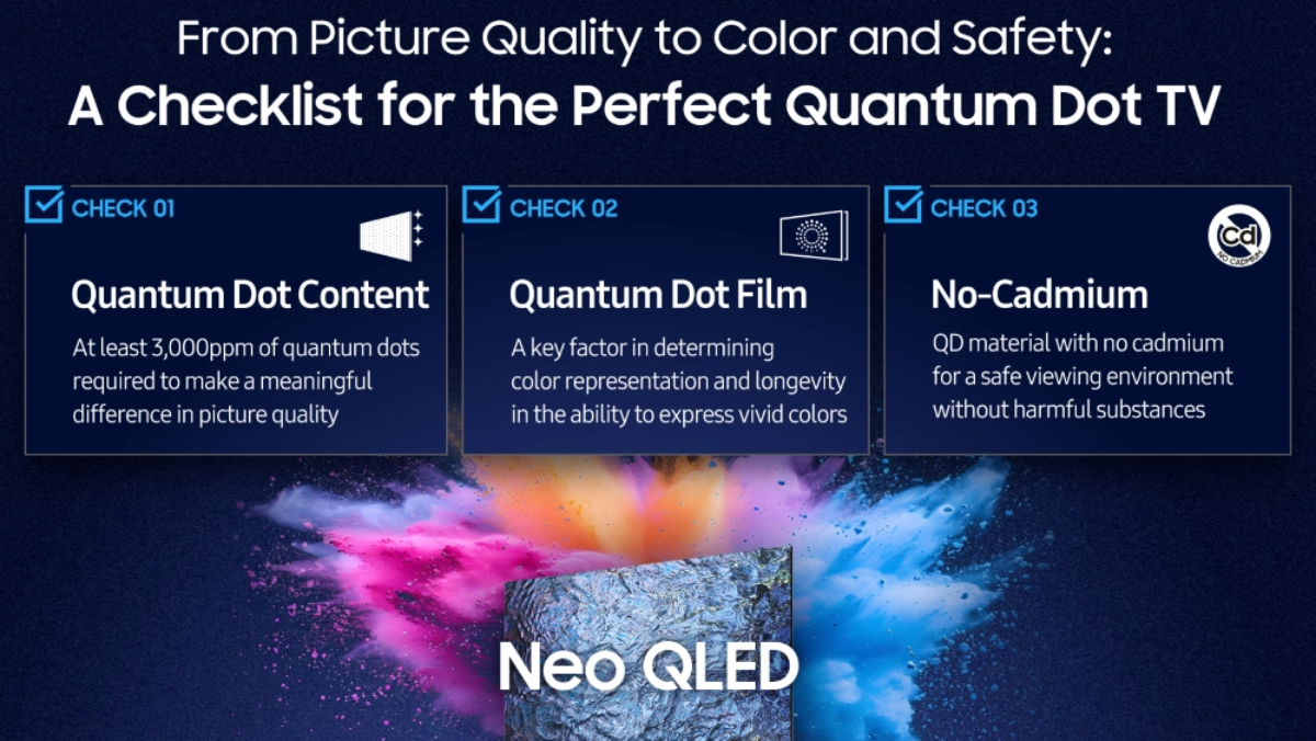 To ensure a premium viewing experience, factors such as the amount of quantum dot content, the quality of quantum dot film and the use of no-cadmium materials must be considered.