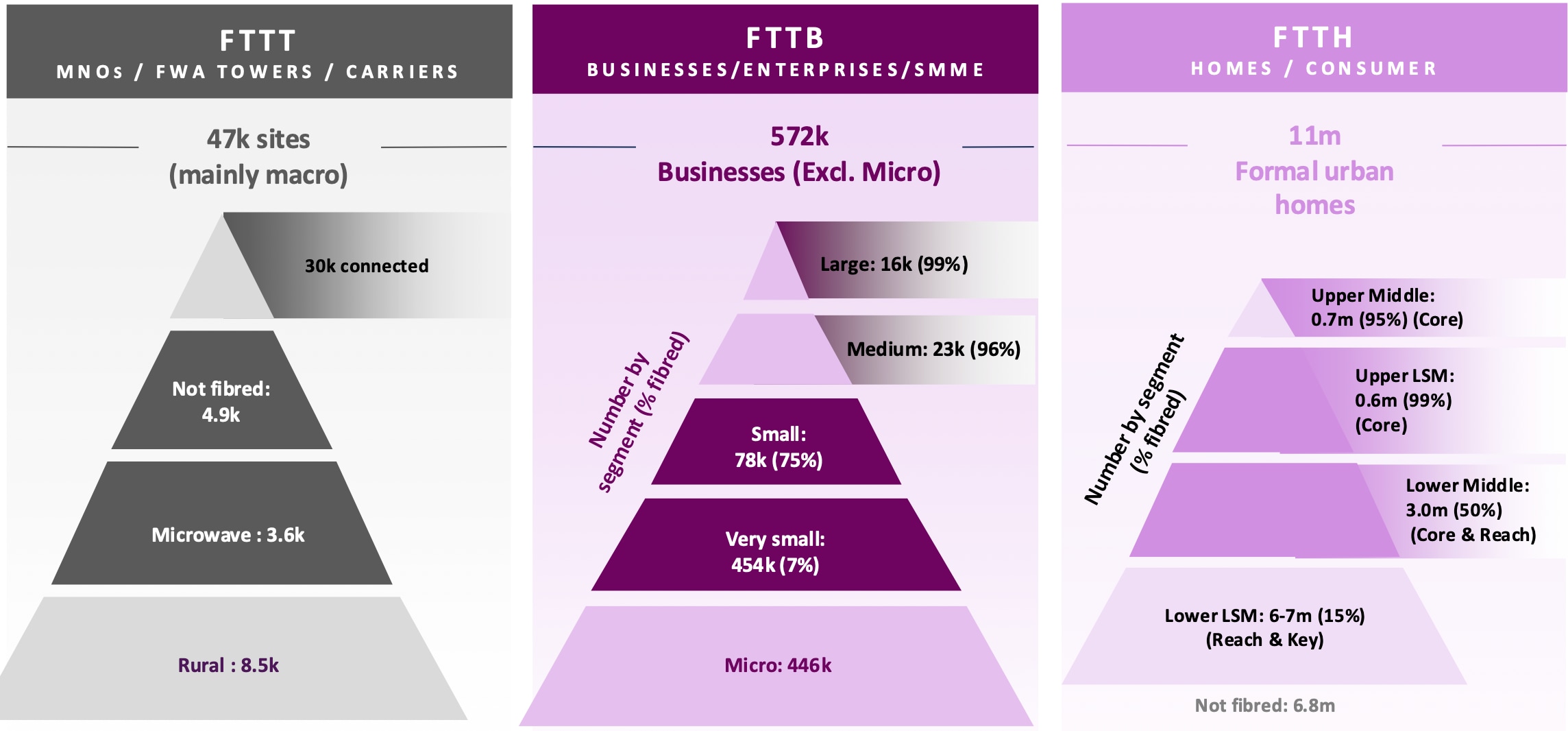 Similarly, 99% of the 600,000 households in the upper Living Standards Measure (LSM) market segment could get fibre.
